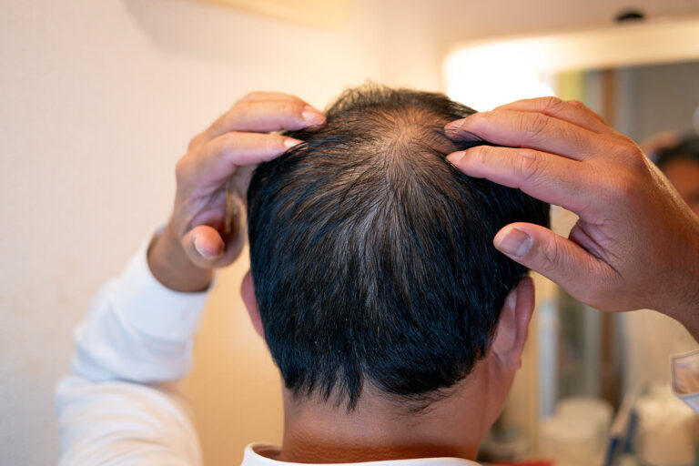 Male pattern baldness is most often caused by DHT (dihydrotestosterone), a byproduct of testosterone. In genetically susceptible individuals, DHT binds to receptors in hair follicles, causing them to shrink over time. This process—called follicular miniaturization—shortens the hair growth cycle, produces thinner, weaker strands, and eventually stops new hair from growing altogether.